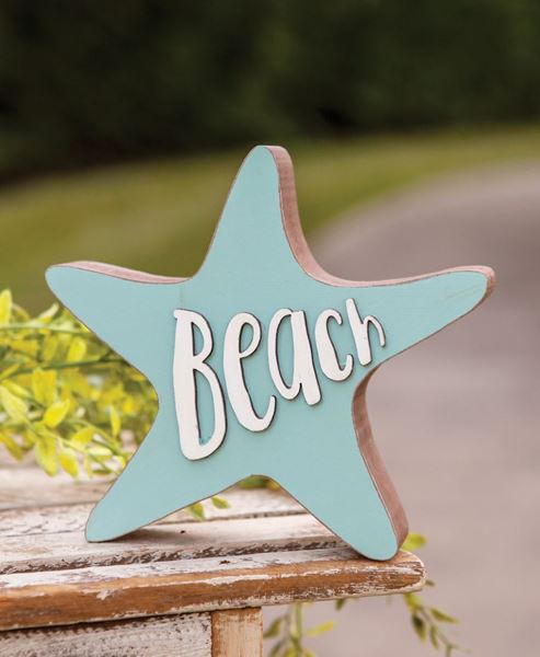 Beach Chunky Star Wood Block Signs Home Décor Tray Filler Shelf Sitter