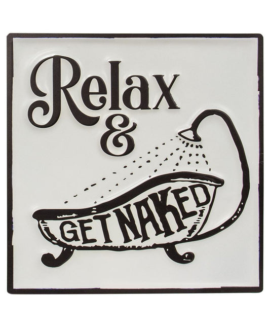 Humorous Relax & Get Naked Enamel Sign Bathroom Décor Wall Hanging