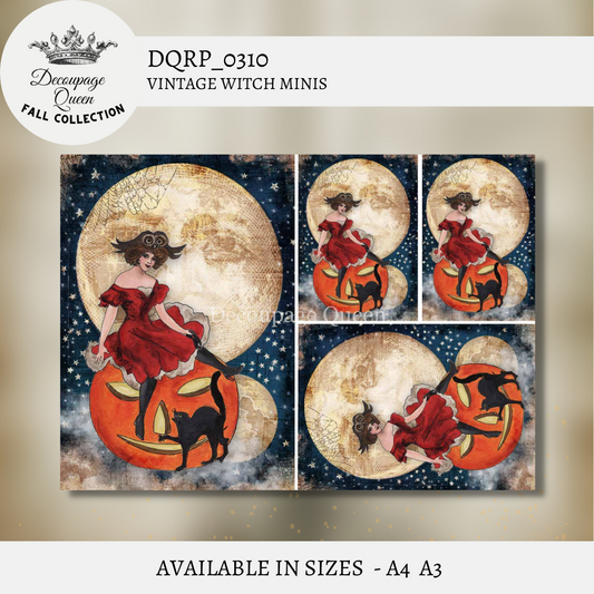 Decoupage Queen A4 Rice Paper Vintage Witch Minis