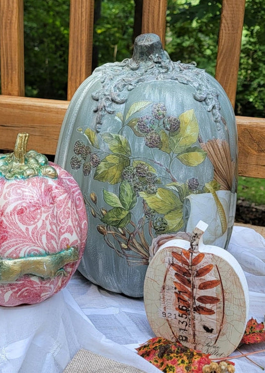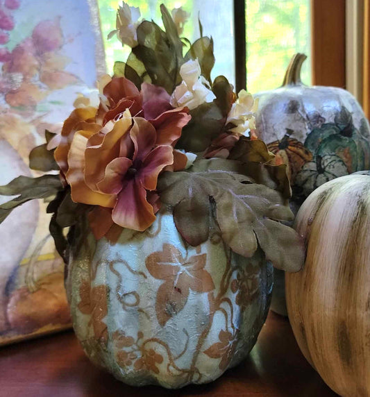 Grape Leaf Decoupaged Decorated Floral Foam Pumpkin Table Décor - Home Décor - Autumn - Fall