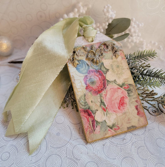 Cottage Flowers Collage Decor Tag