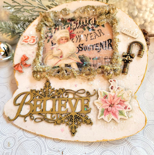 Vintage-Style Christmas Snowglobe Plaque Mixed Media Winter Decoration